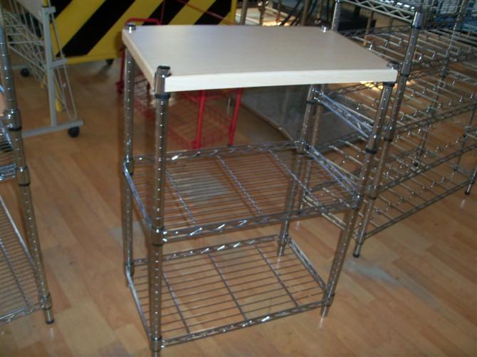 四层镀铬线网货架材质:低碳钢材/不锈钢/镀铬